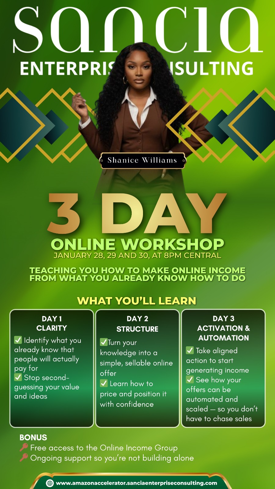 You’ll also get a behind-the-scenes look at how Sancia Enterprise Consulting Inc helps entrepreneurs: